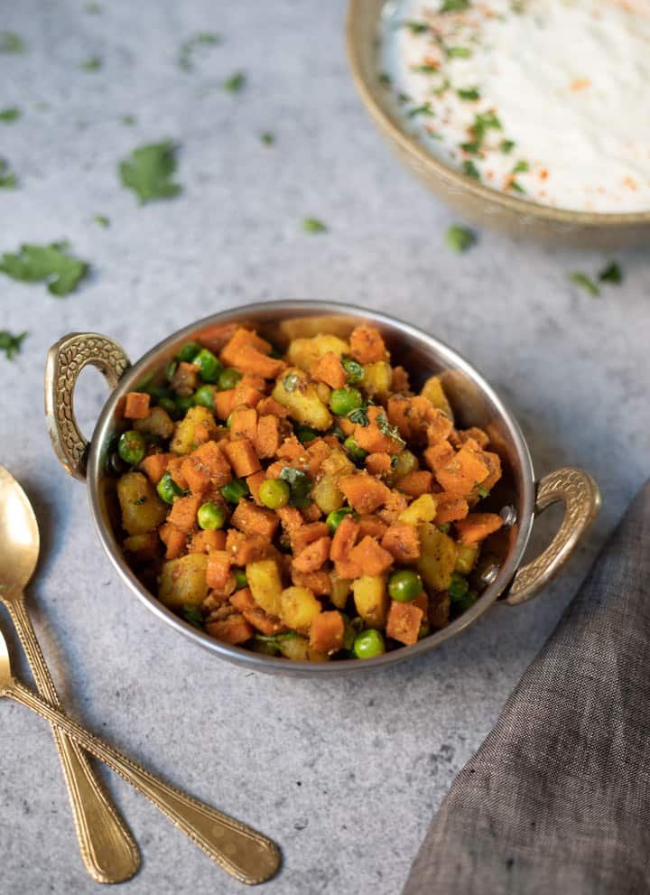 Potato carrot peas poriyal